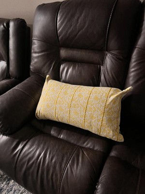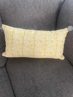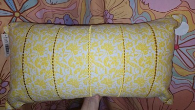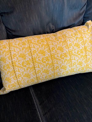 14"x26" Oversized Botanical Lumbar Throw Pillow Cover Yellow - Rizzy Home: Cotton Canvas, Hidden Zipper, Farmhouse Style