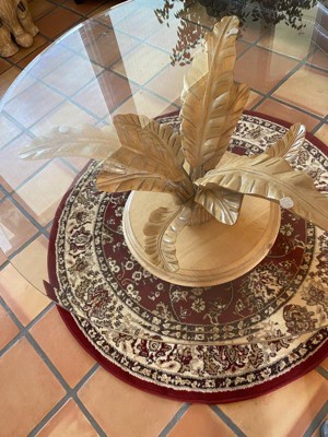 This Great little rug adds warmth under our round glass coffee table. It came rolled up and was curled on one edge when it arrived, but I just taped it to the floor for a couple days. It looks really nice — better than you’d expect for such a reasonable price!