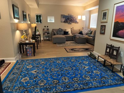 Guests appreciate the elegant design and vibrant colors of the rug, noting its high quality and perfect fit for various spaces. Many find it soft and comfortable underfoot, enhancing the aesthetic of their rooms. While some guests experienced minor issues with color accuracy and thickness, the overall satisfaction with the product remains high. The rug serves as a beautiful addition to homes, making it a popular choice for different areas.