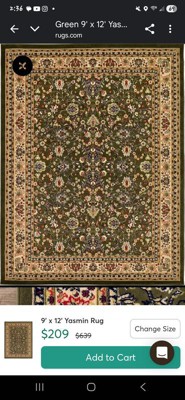 Rug is very thin, and the green is waaay darker than the image. Still a good price for this large of a rug, but I’ll have to get something nicer for our living room.
