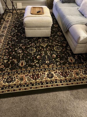 This rug is MUCH darker green in real life. Do not trust the photos for color accuracy.