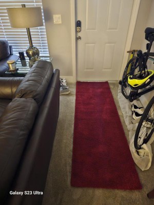 Niceeee...It looks exactly like the picture...just what I was looking for! It fit perfectly in my entry way and adds a nice touch of color. Although I think I'll get some carpet tape to prevent it from sliding a bit when my door opens on it and to prevent the corners from curling up a bit but the runner is so soft and has a nice thickness (even my dog loves to lay on it...lol. I am already looking into ordering some other rugs for our other rooms. I highly recommend!