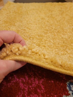 Rug is the exact yellow I was looking for. Looks just like the picture. It's a very nice soft yellow color. Nice quality. Soft to walk on barefoot. I have it in a bedroom. Shipping was fast. Both rugs I ordered arrived promptly and in perfect condition. Would definitely recommend.