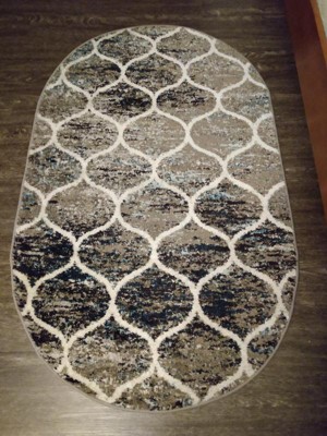 Unique Loom 3' 0 x 5' 0 Trellis Frieze Rounded Blue Multi Area Rug