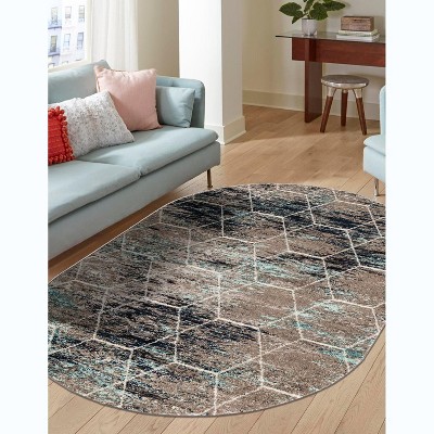 Unique Loom 4' 0 x 6' 0 Trellis Frieze Rounded Blue Multi Area Rug
