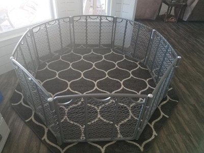 I just bought this with the matching rug pad and I think it is nice. I do with the rug pad was a little thicker but it is perfect for my playpin. I also love how the white on the rug is not bright white so you won't notice if it gets dirty. I am thinking about buying a large matching rectangle one for the living room.
