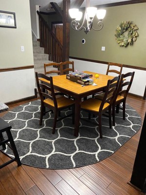 We bought this for under our dining room table and it’s perfect! I was actually pleasantly surprised by the actual size. We thought it might be slightly too big when we measured ahead of time, but with the shape it works perfectly! We didn’t put a rug pad down and don’t have any slipping.