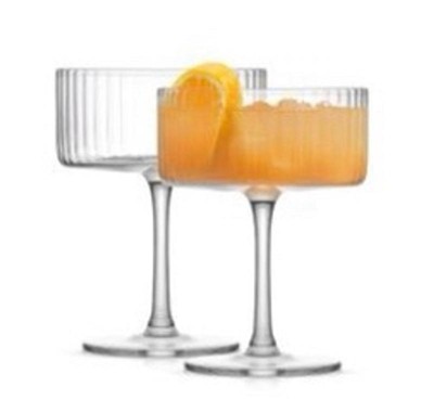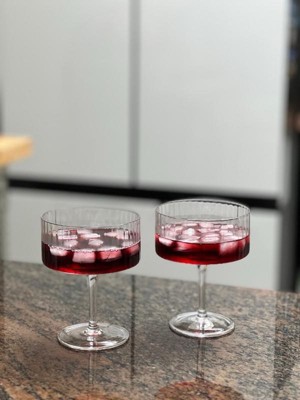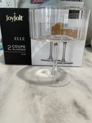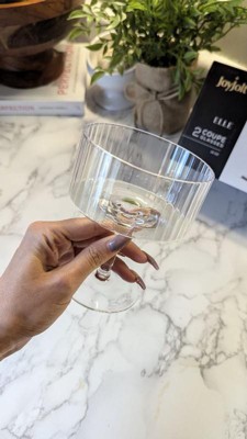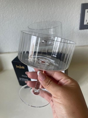 JoyJolt Elle Fluted Cylinder Martini Coupe Glass - 10 oz Ribbed Cocktail Glasses - Set of 2