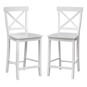This Albury 24” cross-back stool from Buylateral comes in a set of two, ideal for your kitchen counter or island. Constructed of solid rubberwood and features a curved cross back for added comfort. Finished in white, these stools complement many styles of kitchen interiors. From Transitional to Farmhouse, the perfect stools with a timeless style.