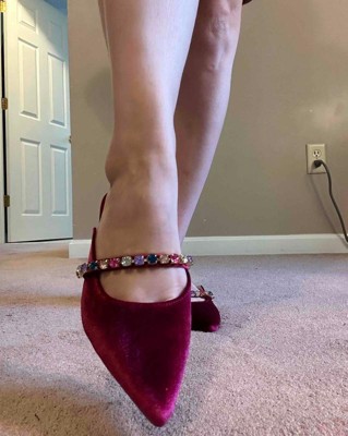 Add some sparkle to your look with the Jewel flats by Journee Collection. This velvet mule is as easy as it is stylish thanks to the gemstone-covered strap and padded insole. A pointed-toe and a tiny covered block heel complete the silhouette for an elevated look. At Journee Collection our flat styles will have you looking just as professional as the boss at work to having the cutest shoes when you go out for the night.