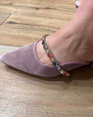 Add some sparkle to your look with the Jewel flats by Journee Collection. This velvet mule is as easy as it is stylish thanks to the gemstone-covered strap and padded insole. A pointed-toe and a tiny covered block heel complete the silhouette for an elevated look. At Journee Collection our flat styles will have you looking just as professional as the boss at work to having the cutest shoes when you go out for the night.