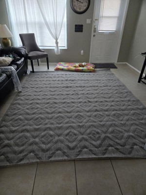 I was looking for an indoor/outdoor rug because my dogs and the kids were so rough on my Ruggable rug. I think this one is going to hold up! It seems to be really well made. I love that the diamonds are made of softer carpet. Most indoor/outdoor rugs are rough, but this one is actually pleasant to walk on.