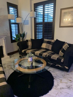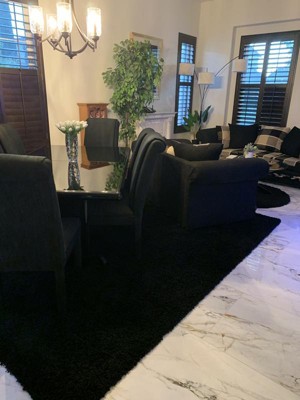 This is the second black round shag rug I have purchased and I am very satisfied. I have also purchased two additional kitchen rugs.