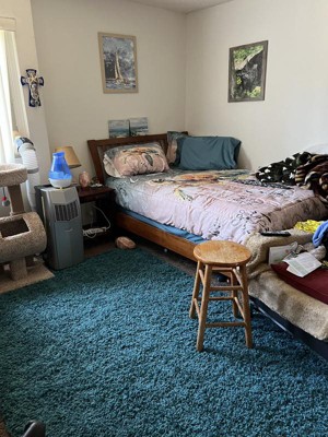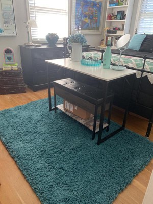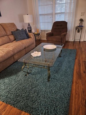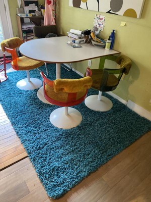 Beautiful aqua blue shag rug. I love the color and the plushness of the shag.