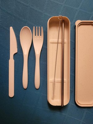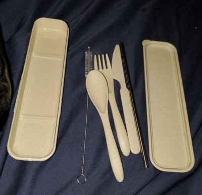What I love about this bag is that it looks like a purse. I can fit my 32 oz water bottle, my bowl that holds a sandwich, and some snacks. I love how chic it is. The scarf gives it such a classy look. It comes with a kit that has a knife, fork, spoon, reusable straw and a cleaner. I was surprised at the durability of the utensils. They aren’t cheaply made.