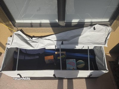 [This review was collected as part of a promotion.] I received this product from influenster for my honest review. The first thing you'll notice is that it is a decent amount of pieces to assemble. Everything is marked, and it is a straightforward process of putting it together. Having 2 people briefly for a couple of parts makes it much easier. It is light weight for how big it is. This is a large 176-gallon container with a metal frame covered by weatherproof material. It has buckles and straps to keep everything secured and ready to withstand the outdoors. I will be using it mainly for pool equipment and toys, which is perfect for its size and durability. Time will tell how well it holds up burns far it has no problem withstanding a florida spring!