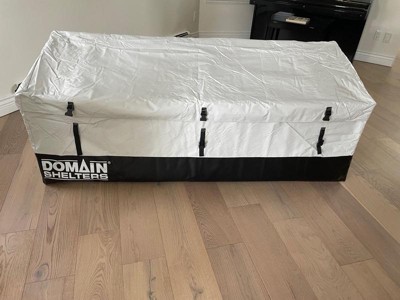 [This review was collected as part of a promotion.] This thing is massive with a huge storage capacity. I used to have a plastic storage unit outside but it could only store a couple of my cushions and that would always make me super frustrated. This thing is like 7 feet long and can store my hammock, cushions, kids bike helmets and a blanket. All sorts of options for storage. And best thing is I can carry it inside with my husband in the winter. Easy!