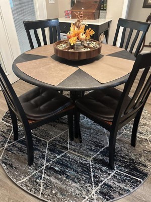 I bought the 6' by 6' round rug about 1 month ago to go under my dining room table. Our home colors are black (metal), white and wood with 1 cabinet being painted seafoam green. This was the only rug that had these colors. When I ordered it, I did not expect the quality to be so amazing! Along with the shipping being so fast! It is the perfect rug... I will not only order again from them, but would highly recommend them! It's 5 stars all the way!!!