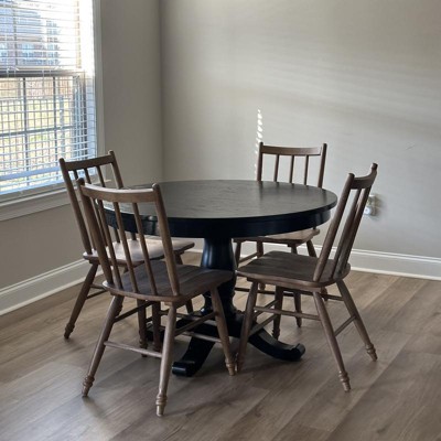 Elevate your dining experience with the Vintage Windsor Dining Furniture Collection from Hearth & Hand™ with Magnolia. This traditional-style collection features a drop-leaf round dining table and spindle-back chairs, both made from lacquered rubberwood and designed with carved-accent pedestal legs. This collection is perfect for mixing and matching with other decor styles and colors palettes.