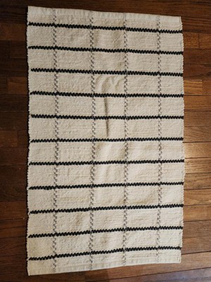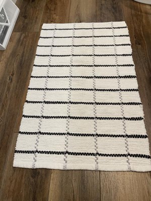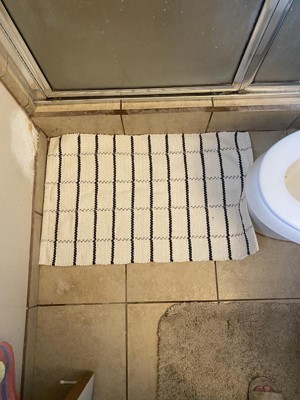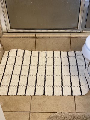 20"x32" Grid Weave Bath Rug Cream/Gray - Hearth & Hand™ with Magnolia: Woven Cotton, Machine Washable