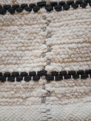 I received this Hearth and Hand with Magnolia bath rug for free. From Hey, bullseye sampling program. For my honest review of it. This is a hand woven bath rug. It's a nice rug. I really like the color of the bath rug. The color of the bath rug goes really nice with the color in my bath room. It's a nice size rug. The rug is 20"x 32". The rug is machine washable. Only thing I don't like about this rug is. It doesn't have a slip resistant backing on the back of the rug. So the rug can slip on the floor.