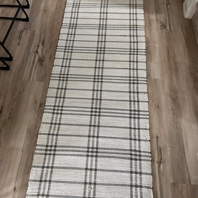 The Tri-Stripe Plaid Handmade Woven Area Rug from Hearth & Hand™ with Magnolia beautifully ties together the decor in any room. Made from a cotton-wool blend for soft comfort underfoot, this handmade runner-style area rug is designed with a plaid stripe print in green and cream hues. An easy pairing with a wide variety of decor, the flat pile height makes it suitable for placement even in high-traffic areas like your living room or entryway.