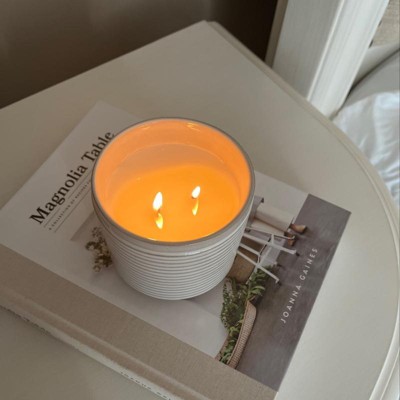 2-Wick Ribbed Ceramic Bergamot Jar Candle Light Gray 12oz - Hearth & Hand™ with Magnolia: Soy & Paraffin Wax, Farmhouse Style