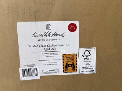 48" Reeded Glass & Wood Kitchen Island with Seating Nook - Aged Oak - Hearth & Hand™ with Magnolia: Farmhouse Style, Metal Hardware