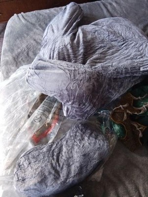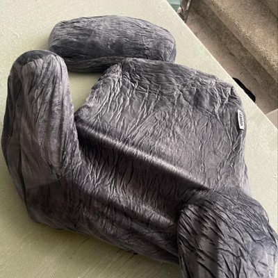 It took a strong effort for me to remove this from the wrapping, a shrink wrapped one. (Imagine 30% grip strength in one hand. 2nd hand is strong). Next, I spent about 10 min or so beating the crap out of it. (This is like physical therapy for me, but I’m sure you can muster the strength to punch this thing until the clumps of matted memory foam break apart inside the cushion. No need to unzip it, but mind the zippers when you’re punching it. I expect it to be fully inflated after a couple days of “re-inflating” it with air. The gray colour is nice. Like the velveteen rabbit kind of look.