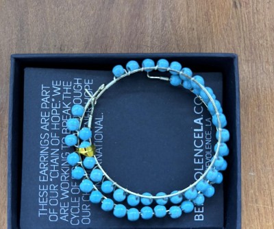- THE MISSION: Each Benevolence LA piece donates to charity. These big and bold turquoise hoop earrings were created and added to our existing jewelry line to help build sustainable water systems through our charity partner, Water Mission.