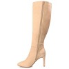 An upscale look you can wear downtown the Elisabeth by Journee Collection. A square-toe and two-toned accent at the calf gives this knee-high boot a modern touch. This classic design features a zipper entry vegan leather uppers and a 4 mm � insole. At Journee Collection our boot styles will have your outfit looking even better than before. They will give you that finishing touch that will have your outfit looking straight out of a magazine.