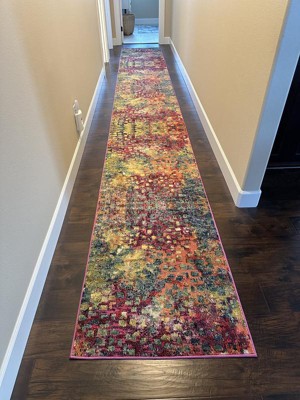 The rug is bright beautiful and fun we had bought it once before in a rental house we sold and always thought it was cool. On a boring hallway it certainly livened it up.