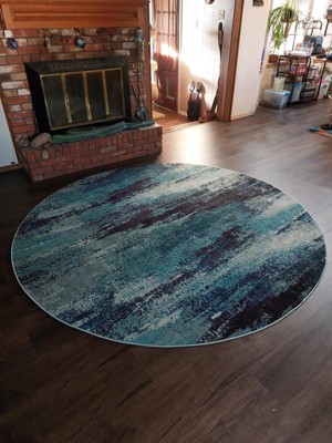 We bought this rug to replace one we'd had too long. It is under the dinette table and the wall behind it is teal. It really warms this area up and the design has been the perfect addition. I will wait to see how it wears over the long haul.