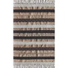 This artisan rug is taking texture and design to a whole new level. Featuring stripes of various woven designs, this multicolored masterpiece offers a fine jute and wool combination that will provide you with lasting comfort at the end of the day and durability that surpasses expectations. The natural tones of jute mixed with black and white blend with undeniable ease. This beautiful statement rug is the final touch in tying a room together and achieving the elegant space of your dreams.