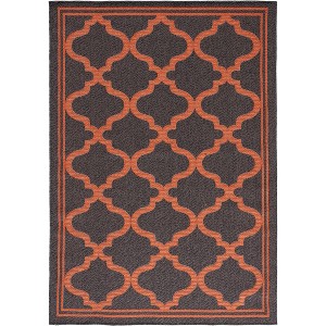 Elevate your living space with the understated sophistication of our Charcoal/Rust Geometric Area Rug. Crafted with precision on a power loom, this medium rectangle rug, measuring 6'-7" X 9'-2", effortlessly combines functionality with style. The geometric pattern in a striking charcoal and rust palette offers a contemporary aesthetic that complements both indoor and outdoor settings.