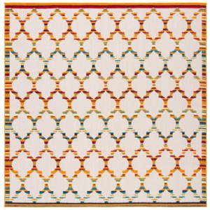 Elevate your living space with the exquisite charm of our 6'-7"x6'-7" Square area rug. Crafted with precision in Turkey, this rug embodies the perfect blend of tradition and innovation, offering both style and durability. The Power Loomed construction ensures a tight weave that is resilient and easy to maintain, making it an ideal choice for any Indoor / Outdoor setting. The harmonious ivory and orange palette provides a vibrant yet sophisticated feel to the rug, with the pattern showcasing intricate designs that speak volumes of its artistic craftsmanship. The rug's square shape and modest 1/4" pile height give it a sleek profile, perfect for those seeking a balance between plush comfort and streamlined elegance. Made from 100% Polypropylene, this rug is not only strong and colorfast but also OEKO-TEX certified, ensuring it is free from harmful substances and safe for your family and the environment. Whether you place it in your patio, living room, or dining area, this rug is sure to be a centerpiece that attracts compliments. Bring home a touch of Turkey's rich textile legacy with this stunning piece, which promises to infuse your home with warmth and a bespoke aesthetic. Shop now and transform your space with this timeless indoor/outdoor treasure.