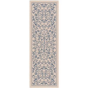 Courtyard CY2098 UV & Stain Resistant Non-Shedding Power Loomed Indoor/Outdoor Runner Rug - Natural/Blue - 2'3"x6'7" - Safavieh