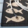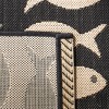 Introducing our charming Small Rectangle Indoor/Outdoor Area Rug, sized perfectly at 2' 7" X 5'. This elegantly crafted rug features a playful and timeless pattern of fish in contrasting black and beige, bringing an air of nautical whimsy to any space.