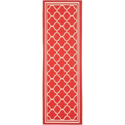 Courtyard CY6201 UV & Stain Resistant Non-Shedding Power Loomed Indoor/Outdoor Runner Rug - Red/Bone - 2'3"x18' - Safavieh