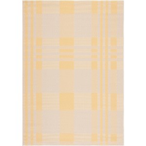 Elevate your indoor or outdoor space with the timeless sophistication of our Gold/Beige Medium Rectangle Area Rug. Expertly crafted in Turkey using a PowerLoomed technique, this exquisite rug measures 6'-7" X 9'-6" and boasts a comfortable pile height of 1/4", perfect for high-traffic areas and seamless integration under furniture. Constructed from a durable blend of 85.4% Polypropylene, 10.4% Polyester, and 4.2% Latex, this rug exemplifies resilience and longevity without compromising on style. Its elegant pattern, as viewed in the image, features an array of geometric lines and squares that create a harmonious balance of simplicity and character, bringing a touch of modern design to any setting. This area rug's golden and beige hues are designed to add a warm and welcoming tone to your decor, inviting both visual and tactile engagement. Whether placed in your living room, dining area, or on a patio, it promises to enhance the charm of its surroundings with its subtle yet impactful design. Proudly OEKO-TEX certified, you can trust in a product that adheres to high environmental and health standards, ensuring your area rug is free from harmful substances. Ideal for the environmentally-conscious consumer seeking to marry elegance with eco-friendly practices. Invite luxury into your home or outdoor space with this opulent yet practical area rug, a piece that stands testament to expert craftsmanship and a flair for contemporary design.