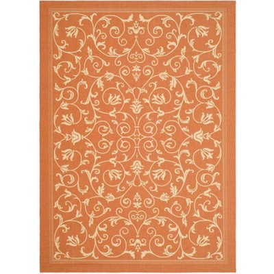Courtyard CY6918 UV & Stain Resistant Non-Shedding Power Loomed Indoor/Outdoor Area Rug - Terracotta/Bone - 8'x11' - Safavieh
