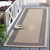 The runner's design features a clean, geometric border that frames a serene cream center, providing a subtle yet compelling pattern that draws the eye without overwhelming your space. This refined aesthetic not only enhances your home but also offers versatility for outdoor settings such as patios or terraces.