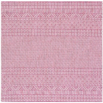 Courtyard CY8062 UV & Stain Resistant Non-Shedding Power Loomed Indoor/Outdoor Area Rug - Ivory/Red - 6'7"x6'7" - Safavieh