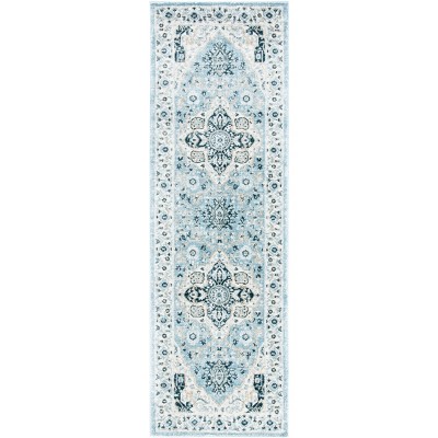 Transform your living space with this exquisite 9' X 12' light blue and cream area rug, designed to elevate any room with its understated elegance and a touch of old-world charm. Perfectly oversized to suit your grand spaces, this large rectangular rug harmoniously blends into your home decor, offering a serene and inviting ambiance.