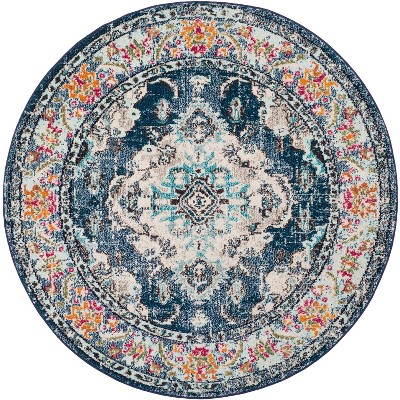 Madison MAD447 Non-Shedding Power Loomed Indoor Accent Rug - Navy/Light Blue - 4' Round - Safavieh
