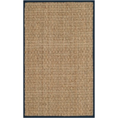 Natural Fiber Basket Weave NF114 Power Loomed Indoor Accent Rug - Natural/Teal - 2'6"x4' - Safavieh