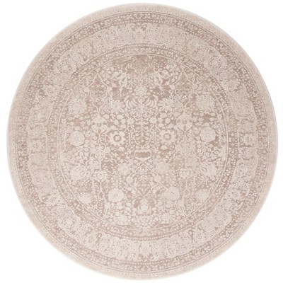 Elevate your space with this round rug, measuring 6 feet 7 inches by 6 feet 7 inches. Its beige and cream hues blend seamlessly into any decor, offering a touch of classic elegance. Crafted with care in Turkey, this rug features a traditional style with an exquisite oriental pattern that adds timeless charm to your living area. The power loomed weave technique ensures a detailed and intricate design. Made from a blend of 60 percent polyester and 40 percent polypropylene, it combines durability with a soft feel underfoot. The rug's low profile height of 3/8 inch makes it a versatile addition to high-traffic areas, providing comfort and style without getting in the way. Transform your home with the sophistication of this beautiful piece.