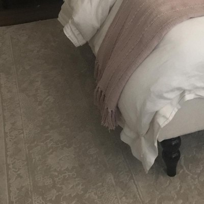 This was the 4th or 5th option I tried. This was the last to arrive and the rest had already been returned so if I didn’t like it, it was back to square one. This is so pretty and mine is definitely cream and ivory. It’s a very muted tonal pattern and it does have a gorgeous shimmer towards the middle, but it’s very understated. It’s high quality and once unrolled it’s flat without creases. It is SO soft. I’m not done with my room, but I really love where it’s headed after finding this beautiful rug!!!!