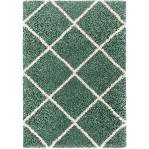 Introducing our luxurious 9 x 12 feet large rectangle area rug, a perfect blend of comfort and elegance to enhance any room in your home. Crafted in Turkey using state-of-the-art power-loomed technology, this rug boasts a plush pile height of 1 3/4 inches, providing a soft underfoot experience that is second to none. Constructed from high-quality polypropylene, our shag style rug is not only soft but also durable, making it an ideal choice for high-traffic areas. The lush green backdrop of the rug is beautifully complemented by the ivory geometric pattern that exudes a contemporary vibe while adding visual interest and texture to your floors. Whether you're looking to create a cozy retreat in your living room or a warm and inviting atmosphere in your bedroom, this area rug is the perfect choice. Its timeless design and superior construction ensure that it will bring style and comfort to your space for years to come. Don't miss out on the opportunity to transform your home with this elegant and cozy centerpiece.