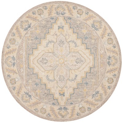 Tucson TSN102 Machine Washable Skid Resistant Stain Resistant Non-Shedding Power Loomed Indoor Area Rug - Beige/Grey - 5' Round - Safavieh